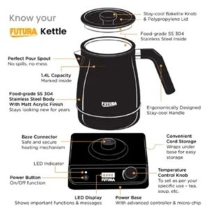 Hawkins Futura Electronic Kettle 1.4 Litre (FKTA1) | 1200W Smart Electric Kettle with Temperature Control & Digital Display