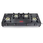 Built with a premium toughened glass top, this gas stove not only enhances the look of your kitchen but also offers exceptional durability and easy cleaning. The four high-efficiency brass burners are engineered to deliver uniform heat for faster and consistent cooking while conserving gas. The burner configuration ? two large, one medium, and one small ? is thoughtfully designed for varied cooking needs, from slow simmering to rapid boiling.