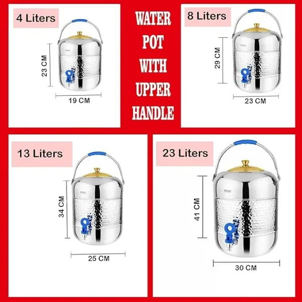 Mintage Stainless Steel Hammered Matka With Tap 25 No. (23 Litre) is a large water storage pot with elegant hammered finish and convenient tap for easy water dispensing.