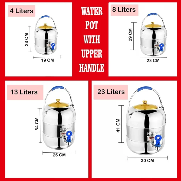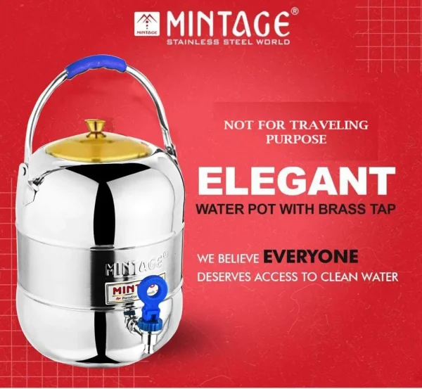 Mintage Stainless Steel Elegant Water Matka with Tap 10 No. (8 Litre) is a durable water storage pot with convenient tap for easy dispensing. Ideal for home, kitchen and daily drinking water use.