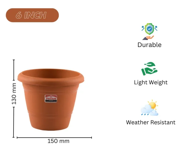 Pavan Flora Planter Pots (6–16 Inch) come in a beautiful brown terracotta finish, adding a natural and elegant look to your home and garden. These planters are designed to suit both modern and traditional décor styles.