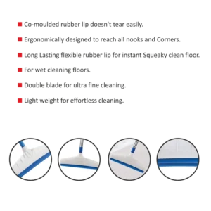 Kleeno by Cello Standee Bathroom Wiper with Rubber Blade | Lightweight Floor & Tile Cleaning Wiper for Home & Bathroom